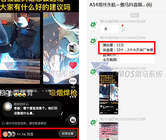 好消息!恭喜蘇州做高負壓焊煙設備的王總參加【傲馬企業抖音營銷學習】,經過精準定位落地幫扶后第12天,視頻播放量11W,就開始獲得10個目標客戶詢盤,后面還會不斷...