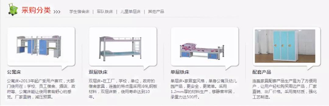 當然少不了各式各樣的款式的鐵架床,還有就是各種場合的床等,在品類和應用場景上滿足用戶,這個是所有目標客戶的基本需求!