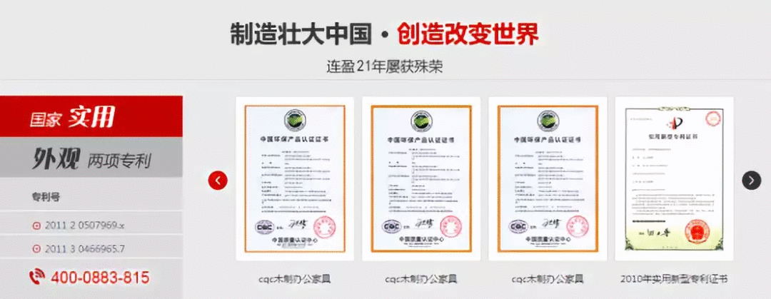 最后借助多項家具專業領域的國家專利的技術背書,讓目標客戶感受到連盈家具的技術保障,進一步說道目標客戶心坎去!