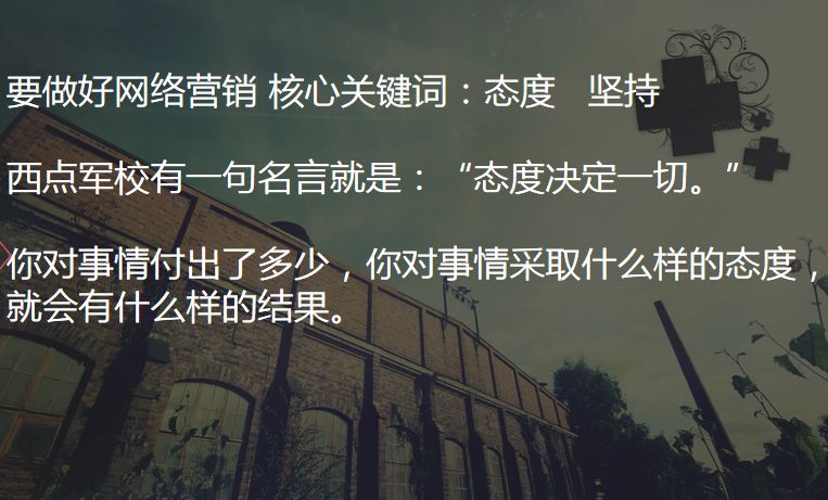經歷過創業低谷的張總,深切體會到公司運營的不易,對互聯網更是多了一份耐心和決心。他認為做網絡營銷態度和堅持非常重要!